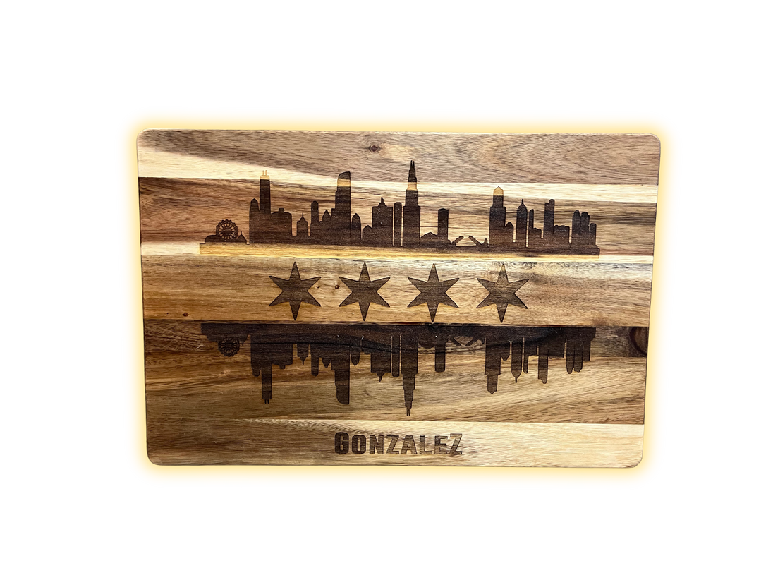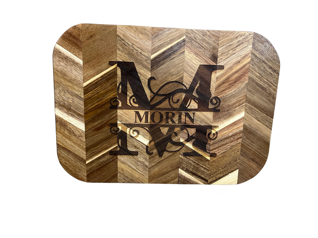 A clean precise laser engraved design gives any cutting board an elegant upgrade